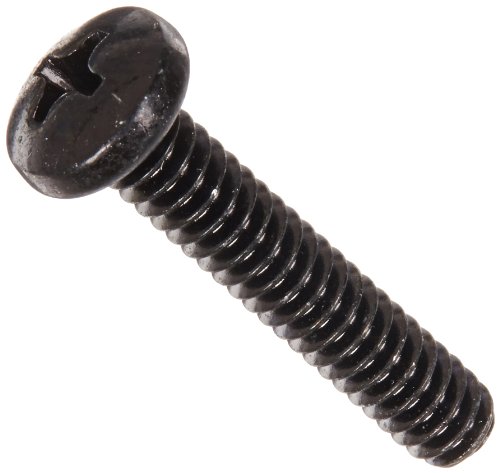 Steel Pan Head Machine Screw, Black Zinc Plated, Meets ASME B18.6.3, #2 Phillips Drive, #10-24 Thread Size, 1" Length, Fully Threaded, Import (Pack of 100)