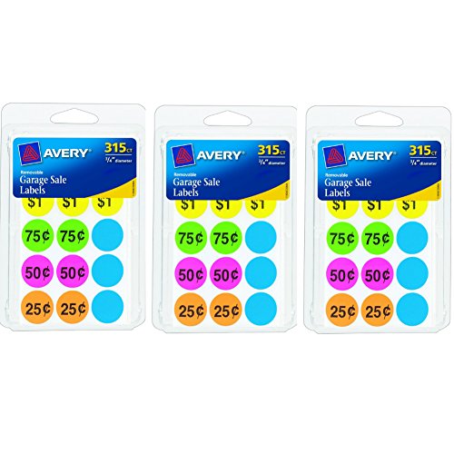 Avery Removable Garage Sale Labels, 0.75 Inches, Assorted Colors, Round, Pack of 315 (6725) (3 Pack (945 Lables))