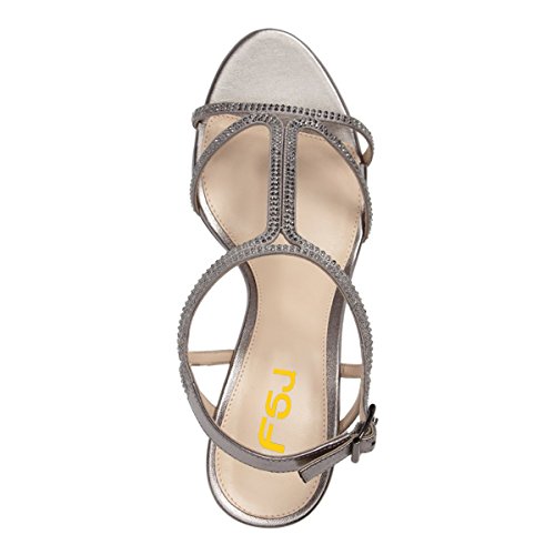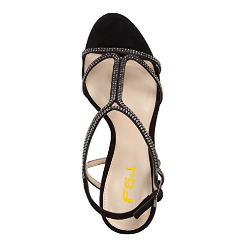 (FSJ)/Women's/Sandals/DIRECT FROM USA/FSJ Women Casual T-Strap Sandals Open Toe Kitten Stacked Heel Strappy Rhinestones Shoes Size 4-15 US