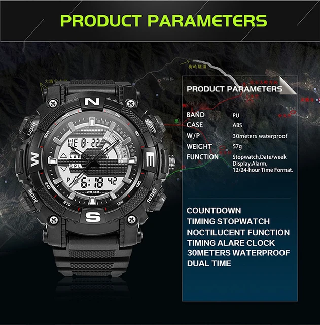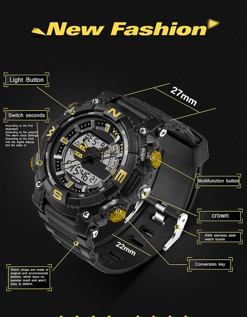 | [해외] 스포츠 석영 스포츠 디지털 자동 방수 시계 남성 패션 시계 최고 품질 시계 육군 손목 군사 크로노 그래프 |