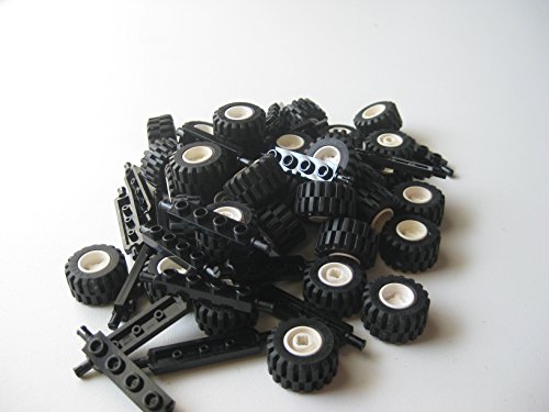 -. Feature : Geniune L.E.G.O- make 20 complete wheel assemblies / 20 Four Stud Wide Black Axles / 40 Black Rubber Wheels (21 Millimeters in Diameter) / 40 White Wheel Hubs (11 Millimeters in Diameter) / Sold LOOSE Without Retail Packaging