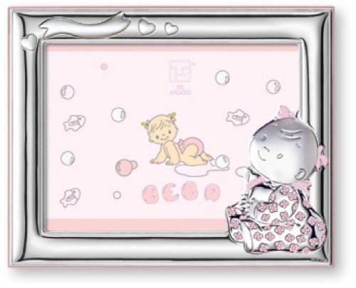 - The frame is hand made from 0.925 sterling silver featuring a baby boy or a baby girl; The back is made from wood, blue or pink