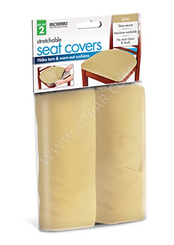 -. Feature : Machine Washable / Easily Restores Worn, Tattered Chairs / Chair Covers Stretch To Fit Oblong, Square, Or Round Shaped Chair Seats; Elastic Edge Holds Cover Securely In Place / Hides Wear and Tear, Rips, and Tattered Edges / Fits Office Chairs, Dinning Room Chairs, Bar Stools, Patio Chairs, and More