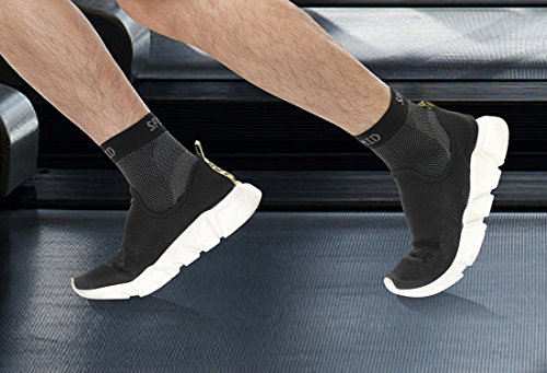 - VERY COMFORTABLE 70% Nylon + 30% Spandex Stretch holds foot & ankle at correct angle with just the right level of healing compression. Wear with sandals, shoes, boot with insoles, slippers, and under any socks. Breathable & Moisture Wicking, Ankle Spur Arch Support Sleeves are made of the Best innovative fabric. It is not only lightweight and breathable but durable. The ankle support will stay dry even during the toughest workouts. During a long run or just while walking, get amazing relief.