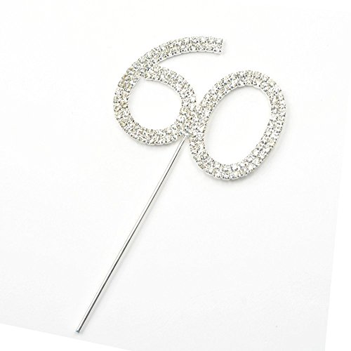 EUBEST Rhinestone Crystal Silver Number 60 Birthday 60th Anniversary Cake Topper