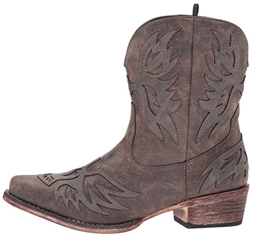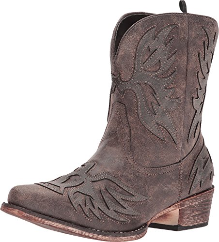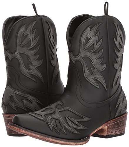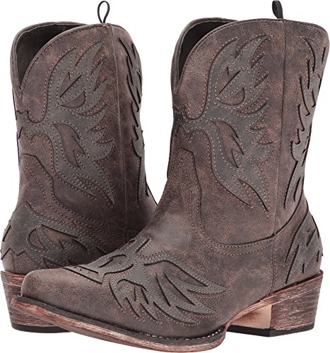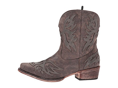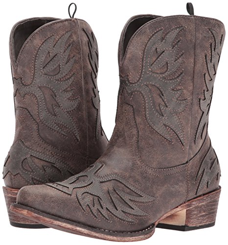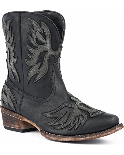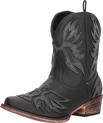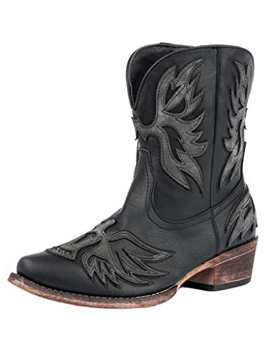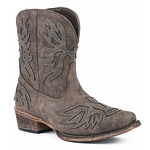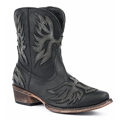 Product Description The ladies amelia shorty boot is a great choice for everyday style, fit and comfort. It is made up of faux leather and has an eagle overlay on the vamp and shaft. This is a 7 inch shaft and has a 1.5 inch heel. Padded insole is added for extra comfort. 0