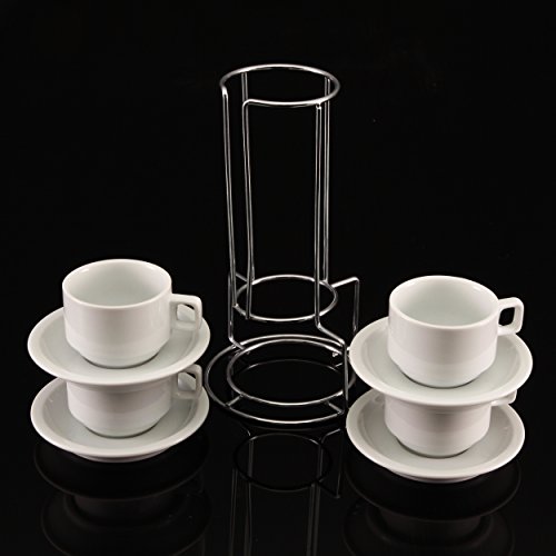 Studio : Home Chord Publisher : Home Chord Binding : Kitchen Product Description The Perfect Option for Espresso Lovers. THE STACKABLE 4 - OUNCE ESPRESSO CUPS WITH SAUCERS With the same high quality as all other Home Chord porcelain pieces, the Stackable 4 ounce Demi cup and saucer set seamlessly combines functionality with your home decor. These time tested beauties nest perfectly in their stainless steel rack on your home or business. In addition to the space saving abilities this is the perfect companion for any espresso makers 0