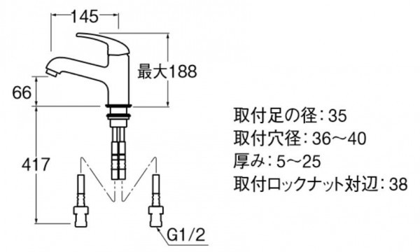 ポップアップなし、ゴム栓なしの、洗面用シングルワンホール混合栓です。凍結が予想される地域用の水栓です。