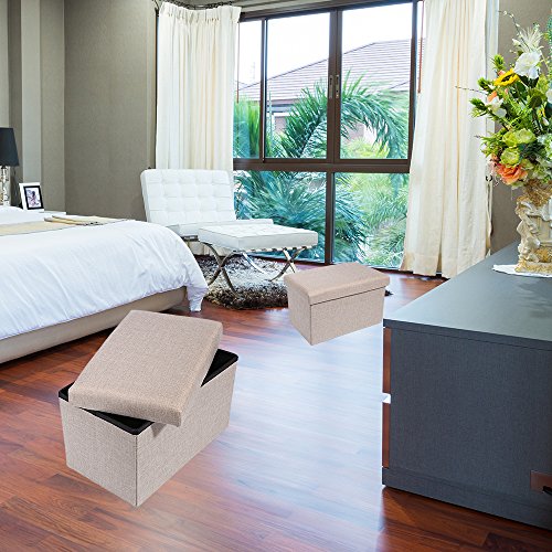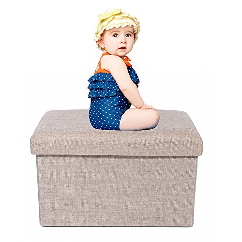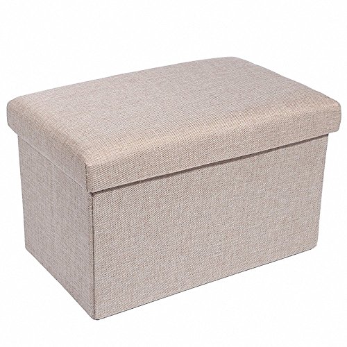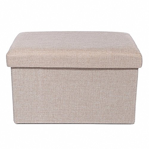Specifications: Size: 29 7/8"L x 14 7/8"W x 14 7/8"H (76 x 38 x 38cm) Weight: 4800 g (10.6 lb) Color: beige Material: charcoal faux linen Bottom Material: Non-woven Fabric Holds up to 600 lbs in weight. Package: 1×Linen Storage Ottoman