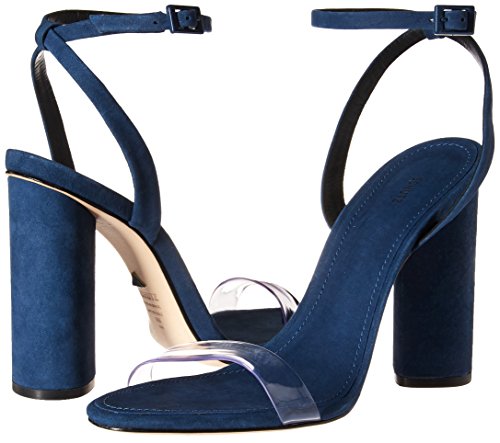 Product DescriptionCylinder block heel sandal with a vinyl toe strap; ankle strap buckle closure0