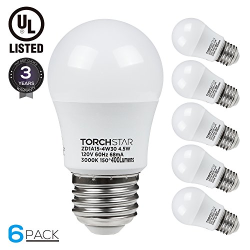 TORCHSTAR 4.5W A15 LED Light Bulb, 40W Equivalent Light Bulb, UL-listed, E26/E27 Medium Base, 3000K Warm White, 400lm, Omni-directional LED Light Bulb, Pack of 6