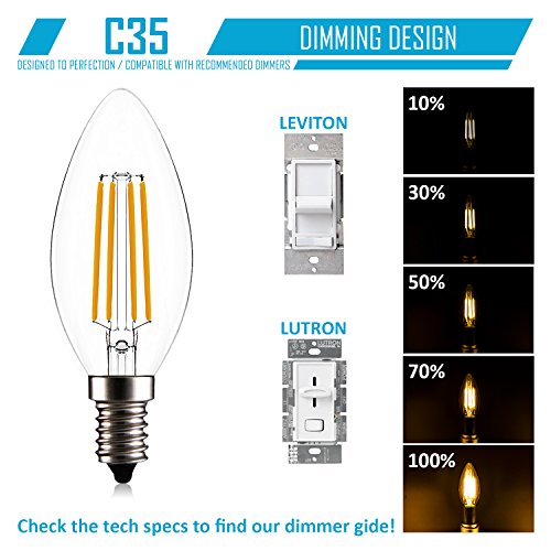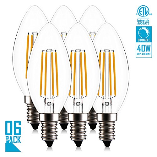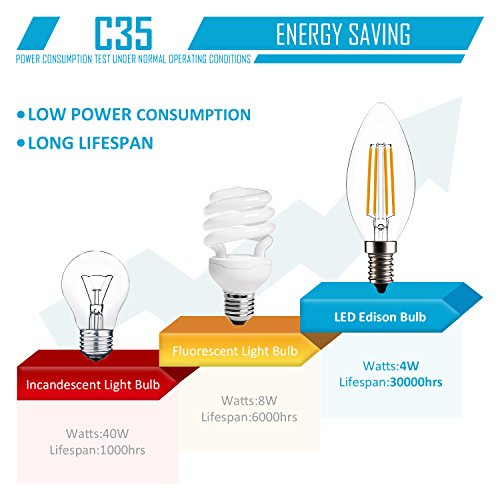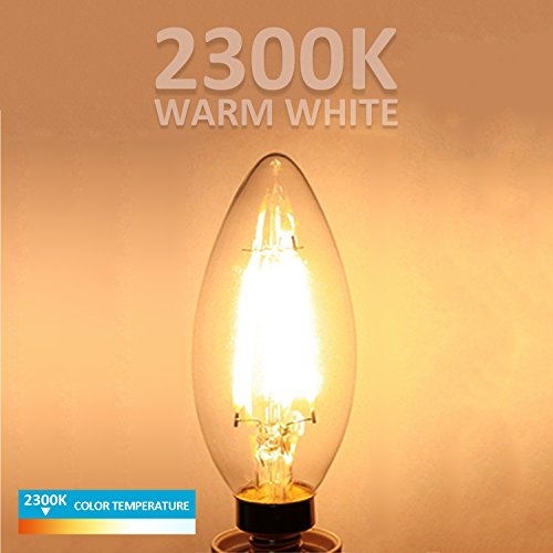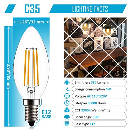- ☀ EASY INSTALLATION: Standard American E12 Candelabra base, LED Filament Candle 4W, AC110-120V, ETL Listed, Energy Star.