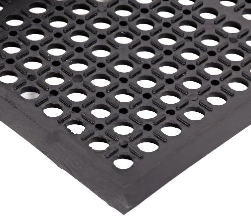NoTrax Rubber 562 Sanitop Anti-Fatigue Drainage Mat, for Wet Areas, 3' Width x 10' Length x 1/2" Thickness, Black