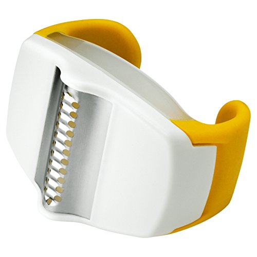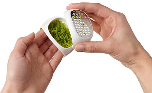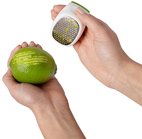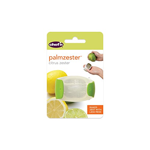 Studio : ChefN Publisher : ChefN Product Description Quickly and easily grate zest with this Chef'n Palmzester. With a white and lemon colored design, this palm zester has a large etched blade that is great for a variety of citrus fruits. Compact in size, it fits in the palm of your hand to zest with less mess by collecting in the storage container. Backed by a manufacturer's limited lifetime warranty, it is also dishwasher safe for easy clean up. 2-3/4" L x 2" W x 2" H 0