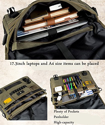 Tanchen 17.3 Inch Laptop Crossbody Handbag Vintage Military Canvas Messenger Bag for Men