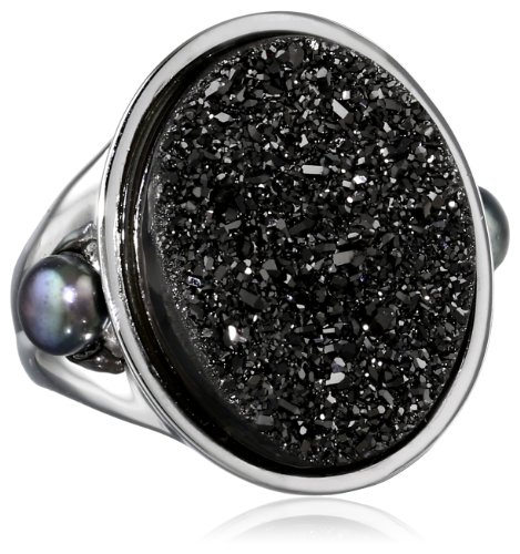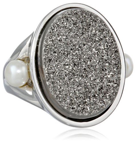 Large piece of agate drusy are paired with freshwater pearls for a look that rocks