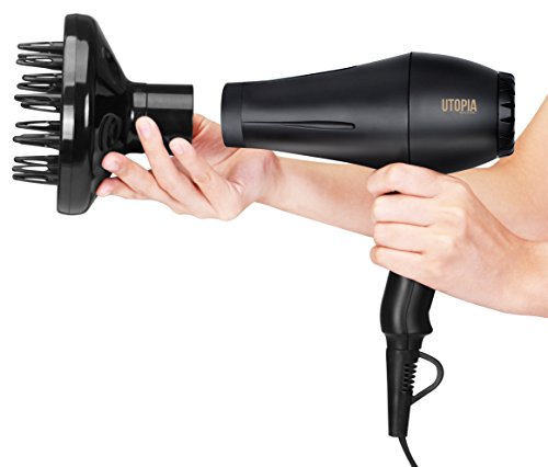 Utopia’s professional hair dryer is strongly built with a 1800-2200W AC motor to deliver unmatched performance. The combination of latest technologies are perfectly blended in this equipment to professionally style your hair that can be charmed for a very long period of time. It’s a very handy equipment to keep with storage convenience through the hanging loop provided so that you can have it placed easily and find it whenever required without a hassle.