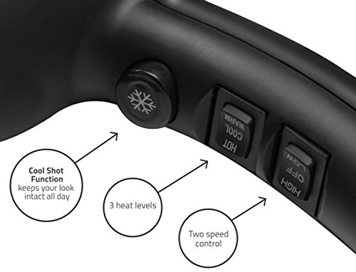 To add great value in terms of consumer ease, its 2 speed and 3 heat settings help in producing the best of results by adjusting the right temperature as desired. So you can start with high heat to remove excess moisture and then switch towards low heat and speed for styling. A cool shot feature further enhances its performance as it assists in providing a blast of cool air onto your hair to keep your look intact all day long. Also, the removable filter plays a vital role in keeping the dryer in best form, making it perfect for delivering highly effective performance at all time and making it easy to clean as well.