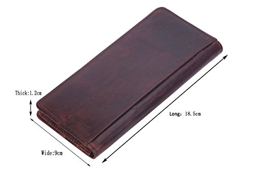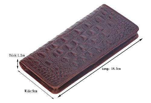 -. Feature : MATERIAL: High quality cow leather,have natural special scratches,as time goes on,it will be more bright,and better touch feeling.The vintage look wallet has 3 Styles:Bifold/Bifold Crocodile Embossed/Trifold / LARGE CAPACITY: Bifold Wallet dimensions 18.5cm(7.28") x 9cm(3.54") x 1.2cm(0.45"),the Trifold Wallet dimensions 19cm(7.48") x 10.5cm(4.13") x 2cm(0.78") / MULTI FUNCTION:Organizer for Phone/Money Clip/Cash/Coin/ID Cards/Credit Cards/Receipts/ Gift. This RFID Blocking wallet blocks RFID signals and protects the valuable P.R.Ivate information / CREATIVE WRAPPED:Special box design,the box looks like an ancient book,creative and beautiful.It is a great gift idea,also funny for self-using / 100% MONEY BACK GUARANTEE -satisfaction guarantee, if you're not satisfied with our product, we will provide you with a refund or a free replacement