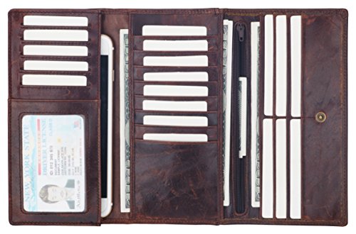 -. Title : Mens RFID Blocking Wallet Vintage Genuine Leather Long Wallet Card Holder-Gift Wrap