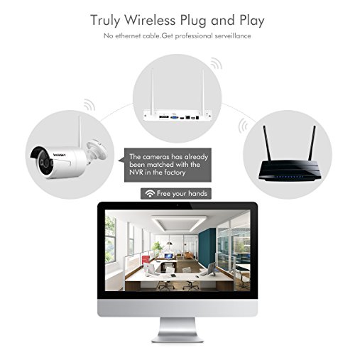 5-in-1 Design with 4 Cameras & 1 DVR/NVR: 2.4GHz 4-channel WLAN WiFi CCTV security system with 4 wireless cameras of 960P 1.3MP; provides you with high resolution image