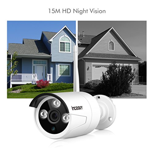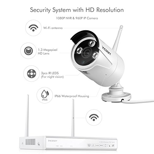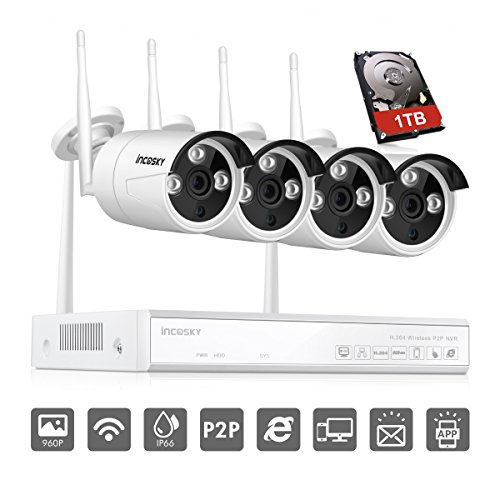 incoSKY Wireless Security Camera System 5-IN-1 WiFi DVR/NVR 960P 4CH HD(Night Vision, Motion Alerts, IP66 Waterproof for Office, Home Surveillance),W1-H, with 1TB Hard Drive