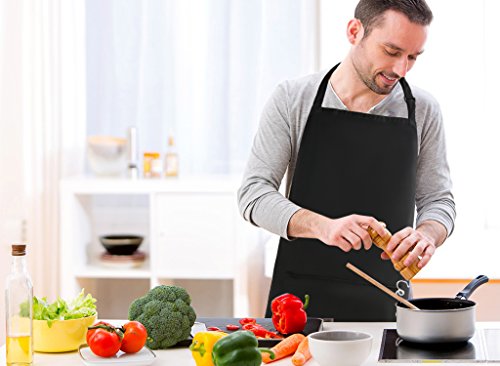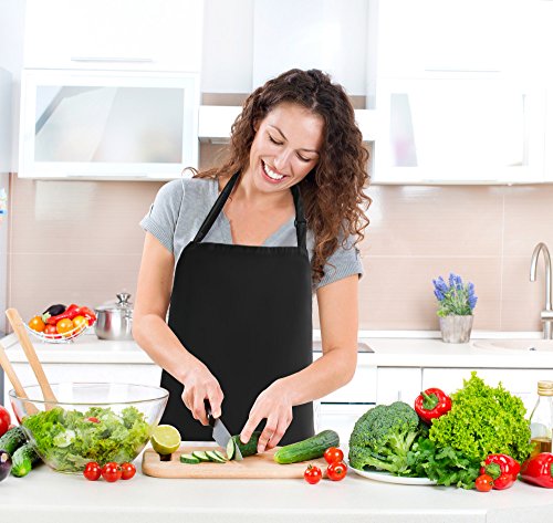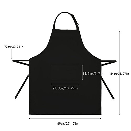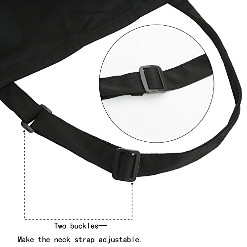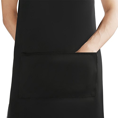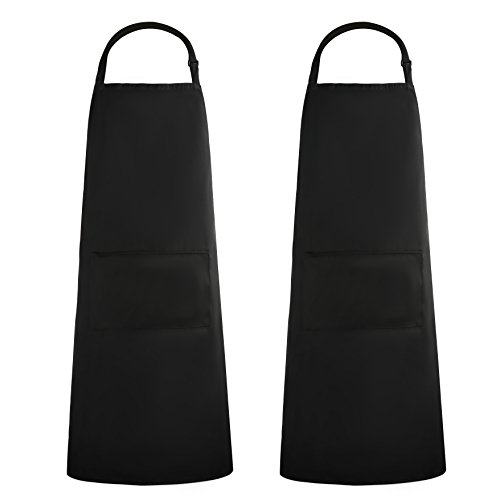 KudoVita Adjustable Aprons Water Repellent Bib Apron with 2 Pockets Cooking Kitchen Unisex Aprons for Women Men Chef, Pack of 2 (Uniform Cloth, Plain Black)