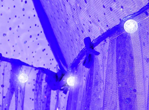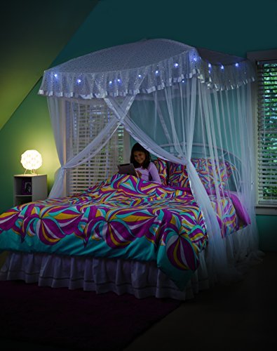 HearthSong Exclusive – Hang this gauzy canopy to create an enchanting space to dream or play. The string of 19 bright LED lights at the top illuminates the room and adds a touch of sparkle. An easy, pretty, and inexpensive way to transform a four-poster into a canopy bed, it will fit over twin to queen size beds. Edged with ribbon along the top and entry, it's durable enough for both indoor and outdoor use. Stores easily. Requires 3 AA batteries (not included). Machine washable; line dry. Imported. Color: Pink. Size: 58" x 50".Feature