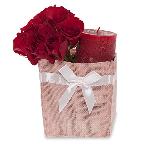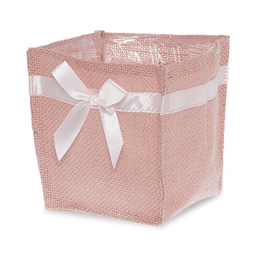 The Lucky Clover Trading Jute Square Utility Bag with Light Pink Bow, Pink