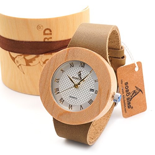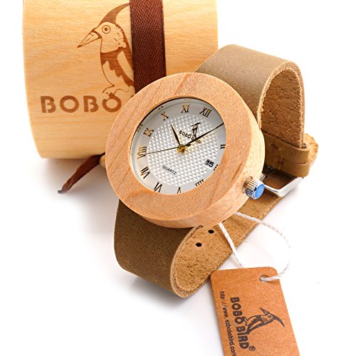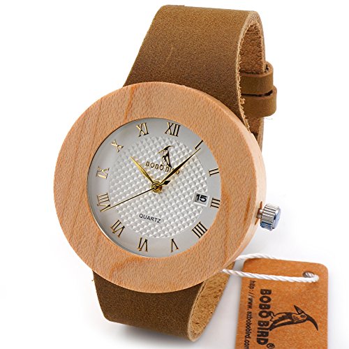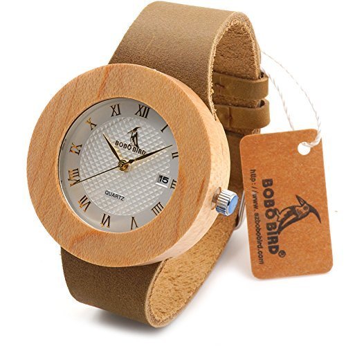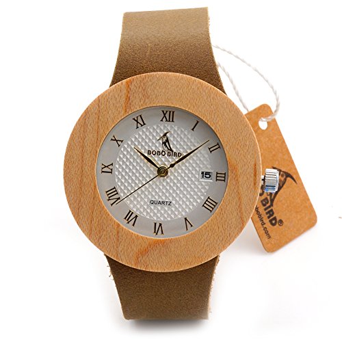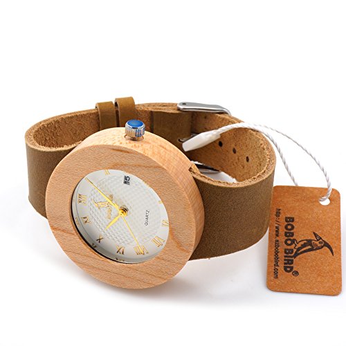 -. Title : BOBO BIRD B91401 Vintage Round Wooden Watches For Women Quartz Watches With Calendar Leather Bands