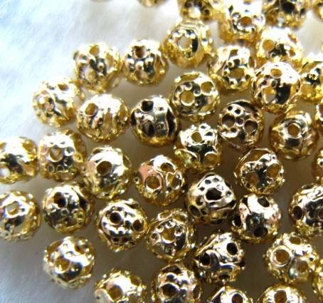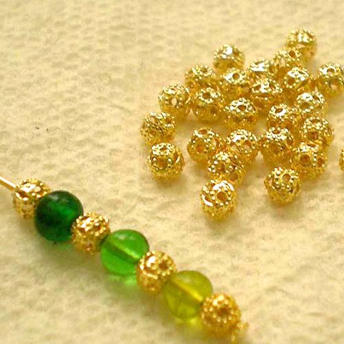Beading Station 200-Piece Filigree Hollow Ball Spacer Metal Beads for Jewelry Making, 4mm, Gold