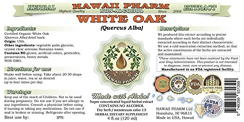 Expertly extracted White oak ALCOHOL-FREE liquid extract! To purchase an Alcohol-based version of this extract please follow this link: http://www.amazon.com/gp/product/B00KLGE2CA/ (Copy and Paste the Link into a Browser Address Bar).