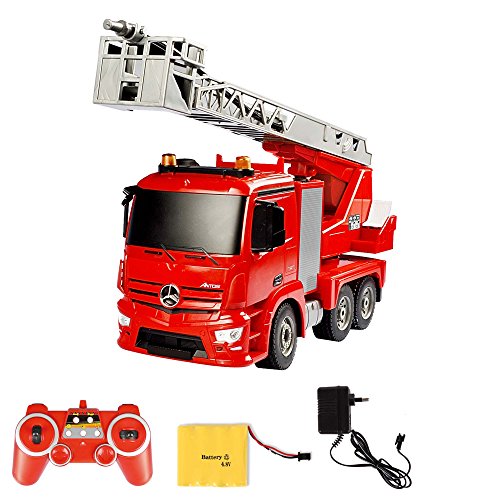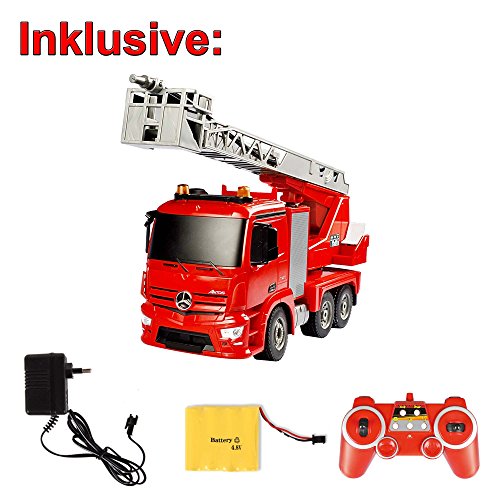 Original ferngesteuerter Mercedes-Benz Antos Feuerwehrwagen Drehleiter mit der neuesten 2.4GHz-Technik (Somit keine Frequenzstörungen mehr bei Nutzung von mehreren Modellen)