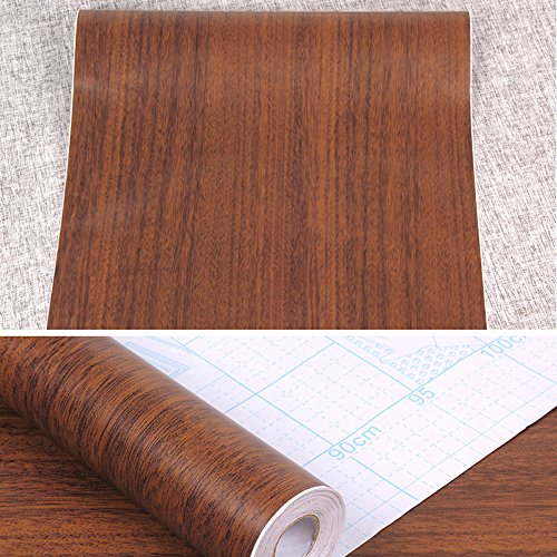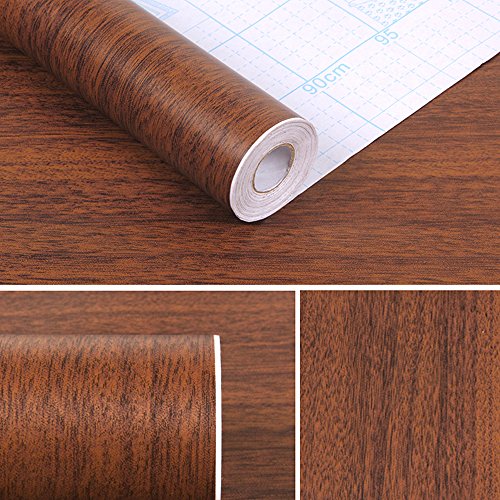 SimpleLife4U Minimalist Brown Wood Grain Contact Paper Self Adhesive Shelf Liner Nightstand Door Sticker 17.7 Inch by 9.8 Feet