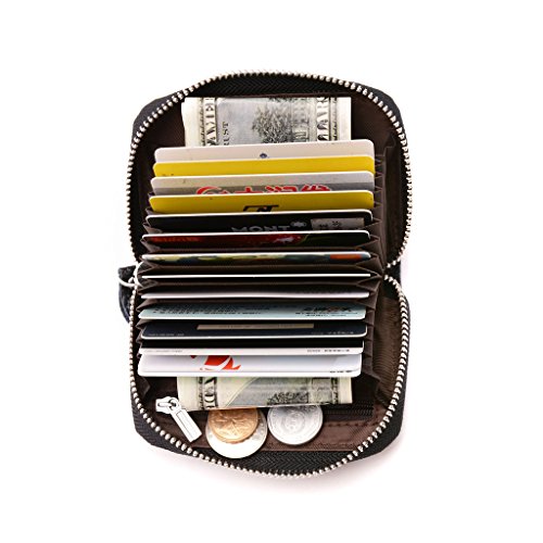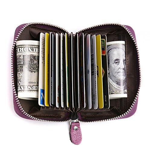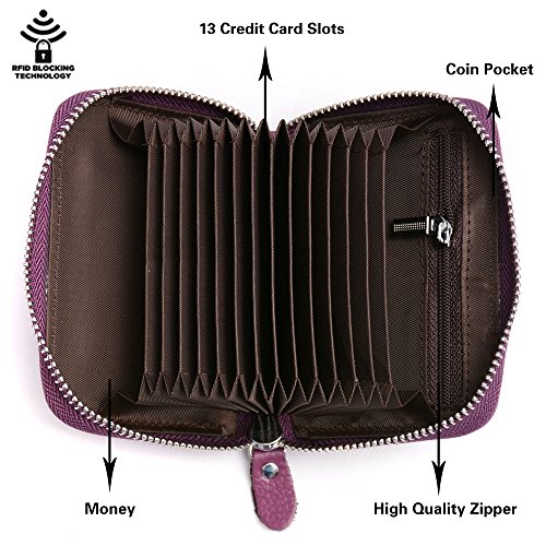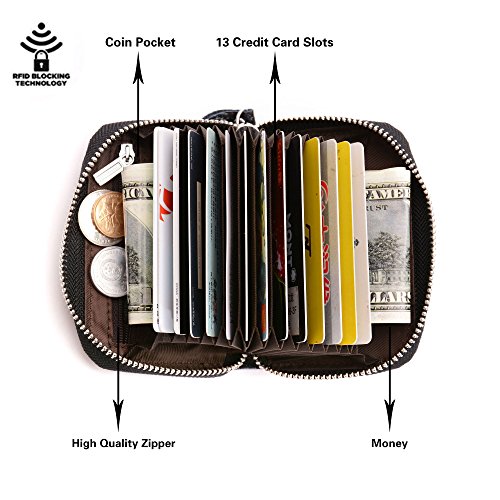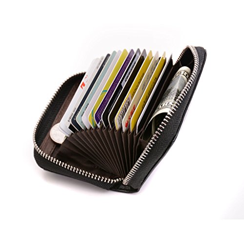 -. Feature : Material: Made of High quality genuine leather with fabric lining and solid hardware. / Dimensions: 4.1"L x 1"W x 2.9"H .The Weight is 0.24 pounds. / SAFETY and P.R.IVACY - Our wallets are equipped with advanced RFID SECURE Technology, RFID Blocking STOPS Electronic Pick Pocketing of your P.R.Ivate information, protect the valuable information stored on RFID chips from unauthorized scans. / Structure: 2 cash slots, 13 accordion folds,1 zippered coin pocket and ID window.Each slot can fit 2 or more cards,Big currency pocket.Great and Convenient for the everyday commuter or traveller. / Block identity theft with this palm-size RFID Blocking wallet.Convenient pockets for coins/change or cash bills wallet