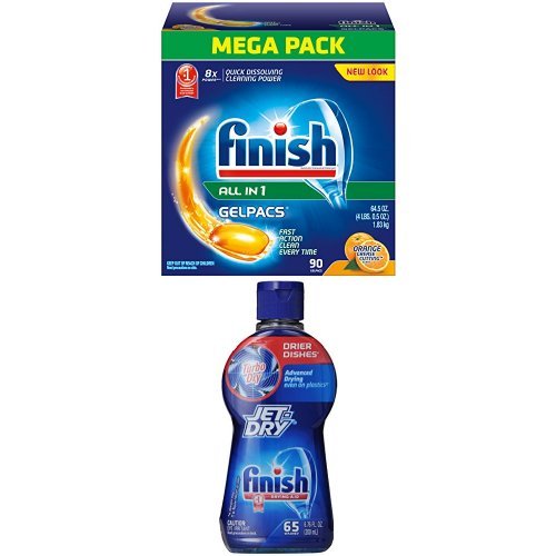 Finish Gelpacs Dishwasher Detergent, Orange Scent, 90 Count Finish Jet Dry Turbo Dry Rinse Ai...