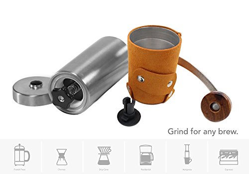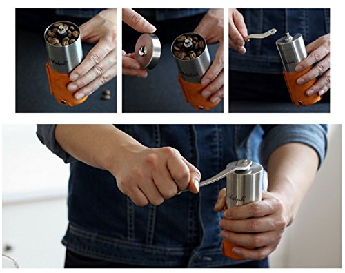 -. Feature : Professional Grade Precision Grind, manual hand coffee bean grinder that achieves a consistent grind on any coffee beans. This can also be easily used as a spice grinder or herb grinder or anything else you want to hand grind. Grinds with ease, with no sticking! / Premium Burr Mill for the perfect grind! The Burr's edge has been precisely shaped to cut the bean while maintaining flavor at every grind size. / Quiet, small, lightweight and portable. We designed this grinder with the minimalist in mind butwithout sacrificing quality. Small enough to slip into a day pack, or on a camping trip and light enough to take backpacking. / Beautiful indestructible stainless steel design built to withstand the demands of everyday use and travel. Constructed for maximum durability and to be easily taken apart for ease of packing and cleaning. / Fast grind, due to reinforced extra long steel handle you can grind your cup in under a minute!