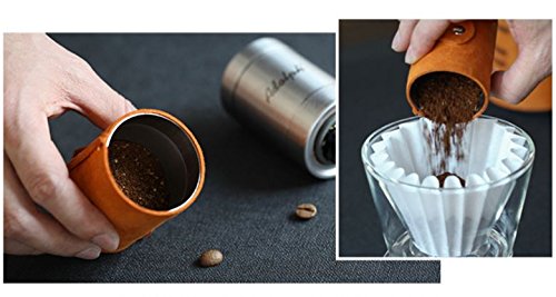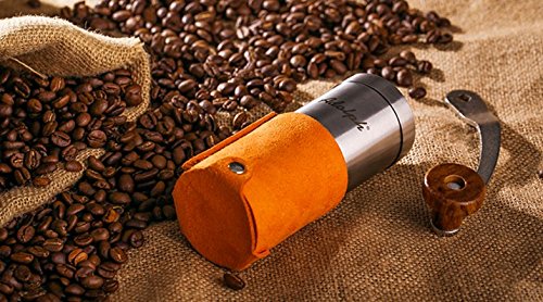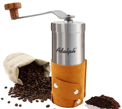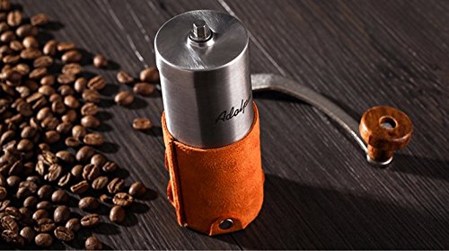 -. Title : Adolph Manual Coffee Grinder with Leather Wrap, Hand Crank and Adjustable Ceramic Conical Burr