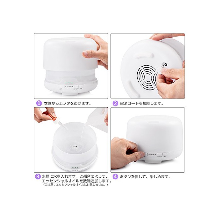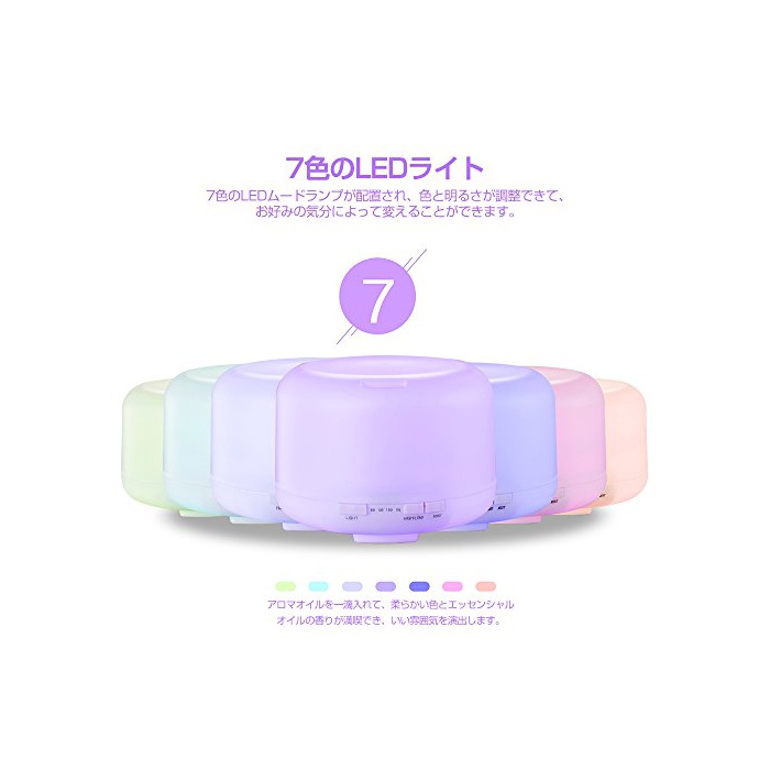 【조용으로 깨끗함】음은 매우 조용으로,수면을 방해하지 않습니다.7색의 LED라이트가 배치되고, 색과 밝기의 조정 수 있고취향의 기분 로 인해 바꾸는 것 를 할 수 있습니다.아로마 오일을 1 적넣고,부드러운 색과 essentional 오일 의 향기가 만끽 성과,좋은 분위기를 연출합니다.