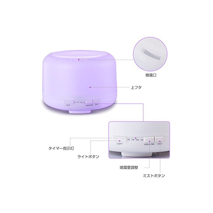 원본상품명: アロマディフュザ アロマ加器 超音波式 大容量 空焚き防止 タイマ付き 7色LEDムドランプ ミストの出力調整可能 PoPoWQ