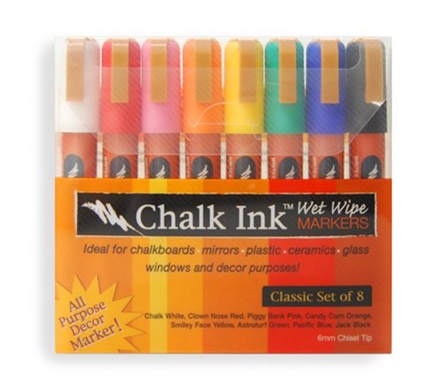 Classic 8 pack of Chalk Ink Wet Wipe 6mm chisel tip markers