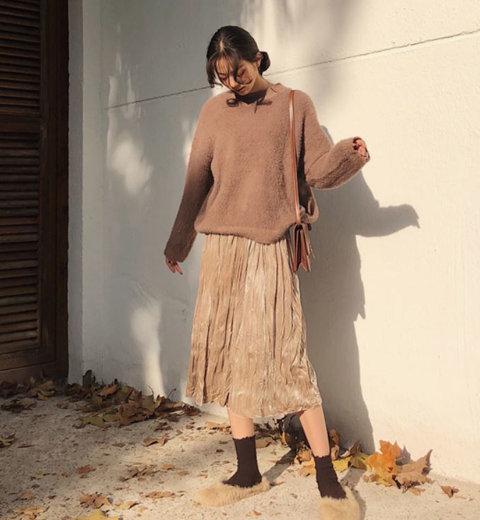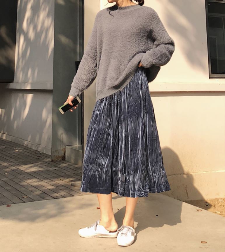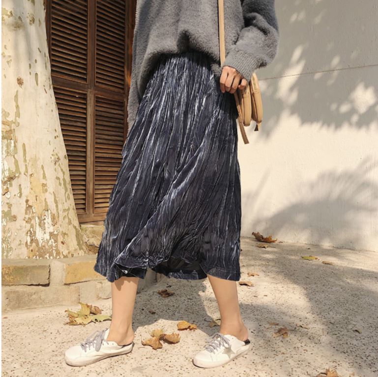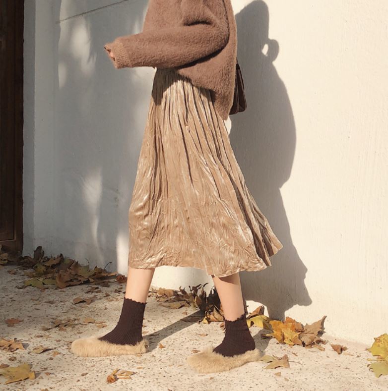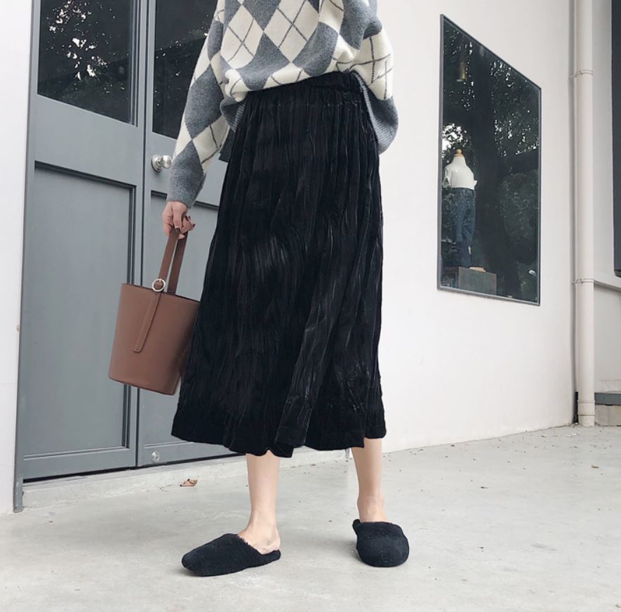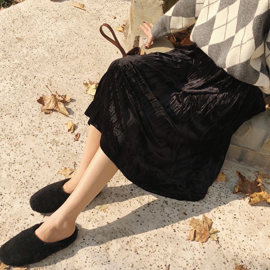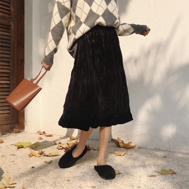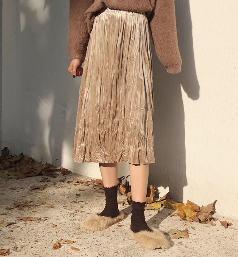 冬にぴったりのベルベット生地が可愛いプリーツスカート♪