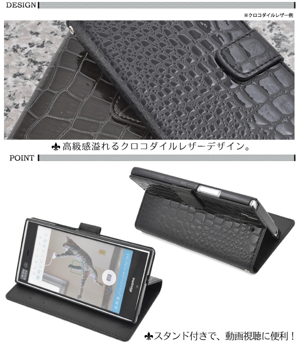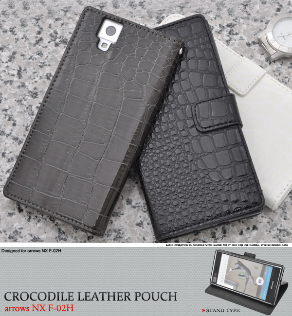 | arrows NX F-02H用クロコダイルレザーデザインスタンドケースポーチ | | | |