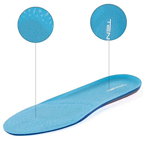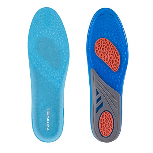 TENWIN GEL Sports Insoles for Shock Absorption, Heel Protection - Unisex Inserts - Relieve Foot Pain, Heel Pain and Against Plantar Fasciitis (US Women's 5-10)