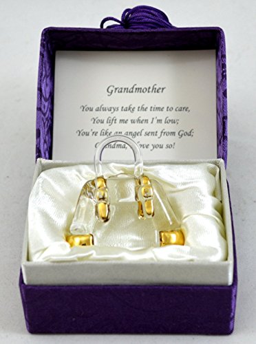Gift for Grandmother: 24K Gold Trimmed Clear Glass Handbag Keepsake - Touching Verse - Satin Lined Silk Presentation Box