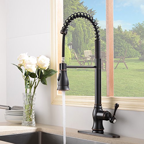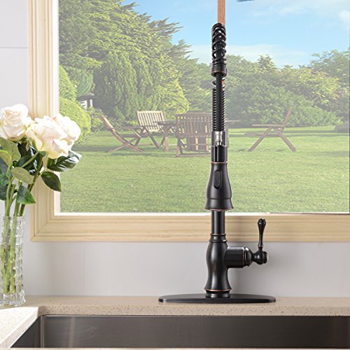 Oil Rubbed Bronze & Ceramic Disc Valve: resist scratches and corrosion. 1 or 3 hole installation(optional escutcheon included), quick installation tool included,more options with pull down sprayer