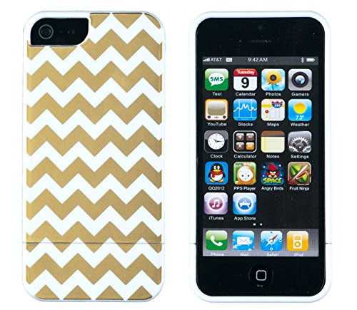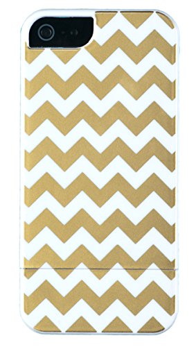 iPhone 5S / 5 Case, DandyCase CHEVRON SLIDER Full Coverage 2-Piece Case Cover for Apple iPhone 5S / 5 (White with Gold Chevron)