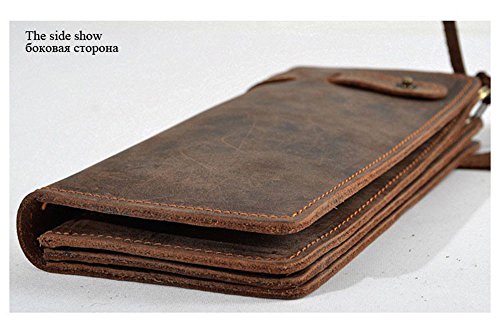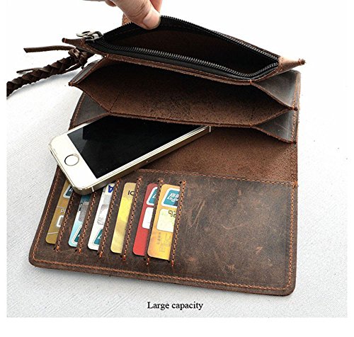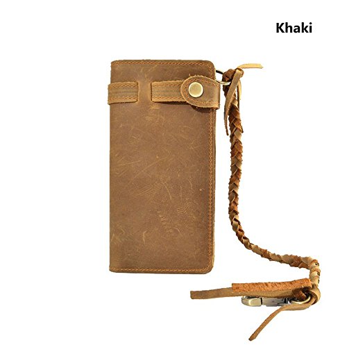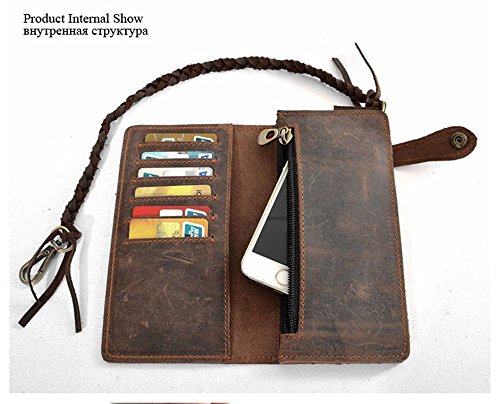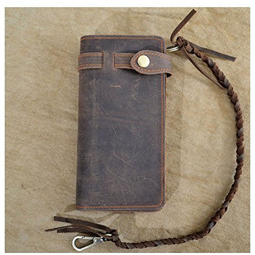 (unbrand)/Accessories/Wallets, Money Key Organizers/DIRECT FROM USA/New Crazy Horse Leather Men Wallets with Knit Chain Retro Long Purses Male Theftproof Cowhide M...