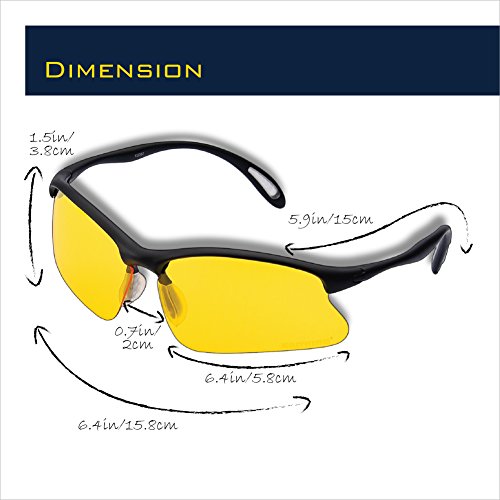 Sunrise Yellow lens sunglasses provide clarity in dawn and dusk, fog, haze, overcast, and other low-light situations and are high in contrast and depth perception cutting blue light rays. Best color for low light daytime activities, dusk/evening driving, sight performance and clarity, enhanced depth perception, indoor sports, mountain bikers, racquetball, pilots, hunters, and cross country skiers, ideal for most eye conditions