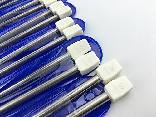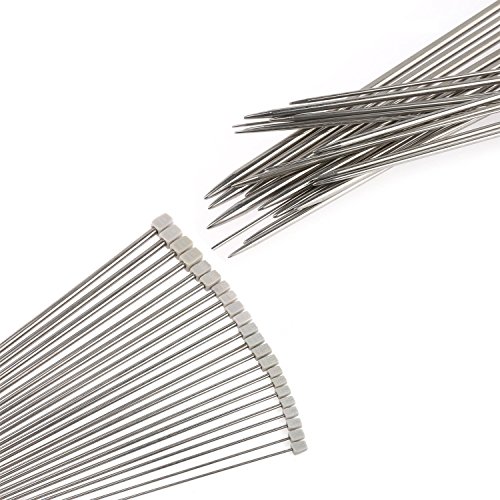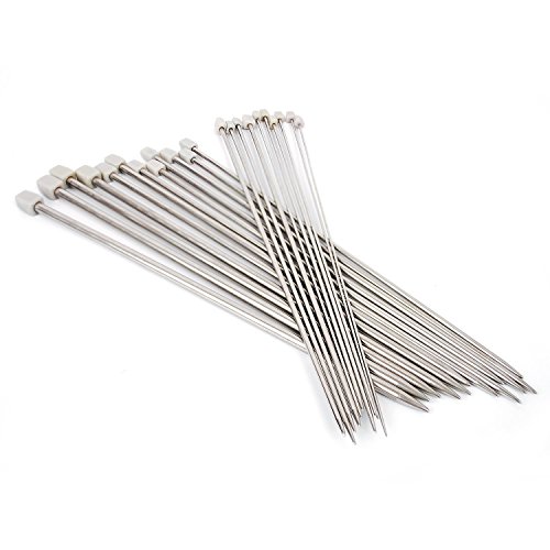 Yansanido 11 Pairs Single Pointed Stainless Steel Knitting Needles 14"(36cm) in Sizes 2mm to 8mm straight knitting needles (14''(36cm))